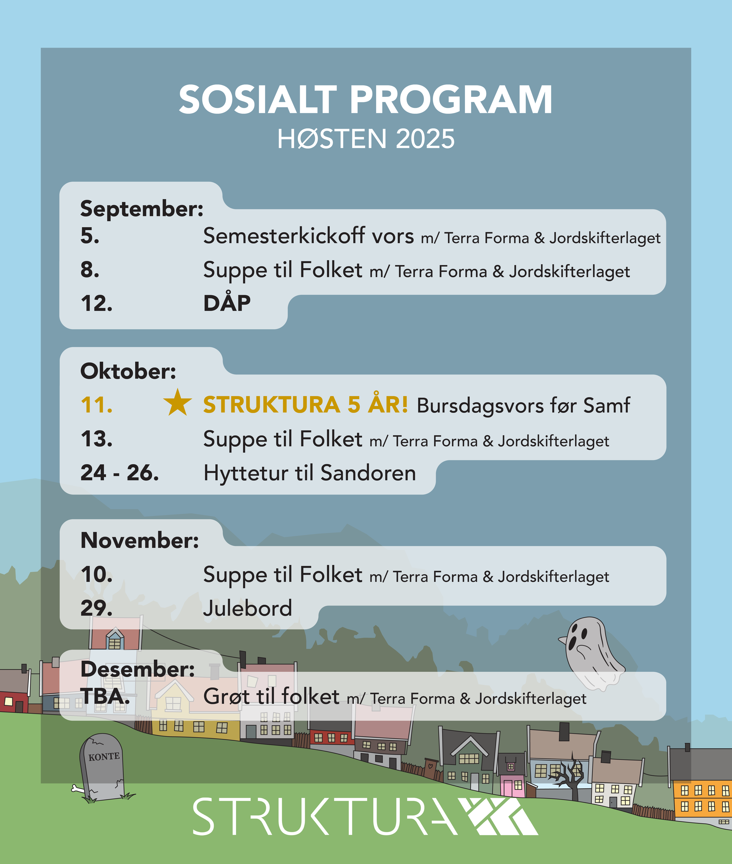Struktura linjeforening tilhører studenter ved by- og regionplanlegging ved Norges miljø- og biovitenskapelige universitet! Vi er en frivillig organisasjon som jobber aktivt for å styrke medlemmenes faglige- og sosiale miljø. Dette gjør vi blant annet gjennom faglige og sosiale arrangementer.